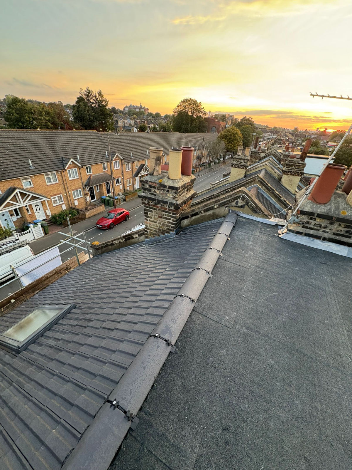 Chimneys are a charming and iconic component of any roof. We specialise in many aspects of chimney repair such as, chimney flaunching, chimney pointing, chimney pots, roof flashing, step flashing, chimney capping and much more. Electric heating in some cases has rendered chimneys useless and so some clients may wish to remove their chimney stacks altogether. When removing chimney stacks, our certified staff remove any flaunching, cowls or pots, then remove the bricks one by one, safely and carefully. We will always try our best to find materials that fit the original aesthetic of the chimney stack and building, we care deeply about maintaining a good aesthetic of a chimney.